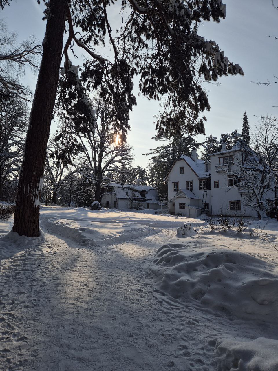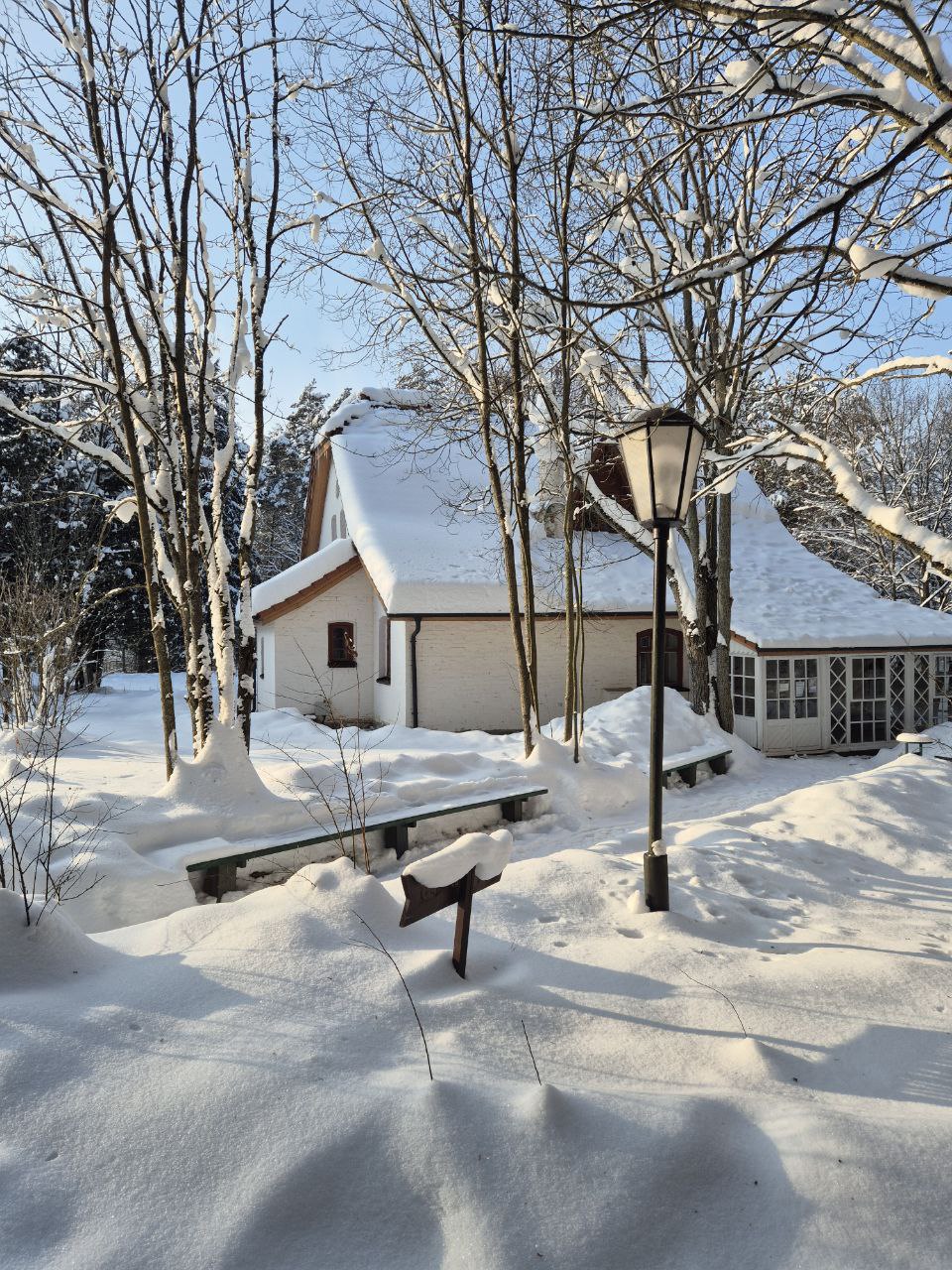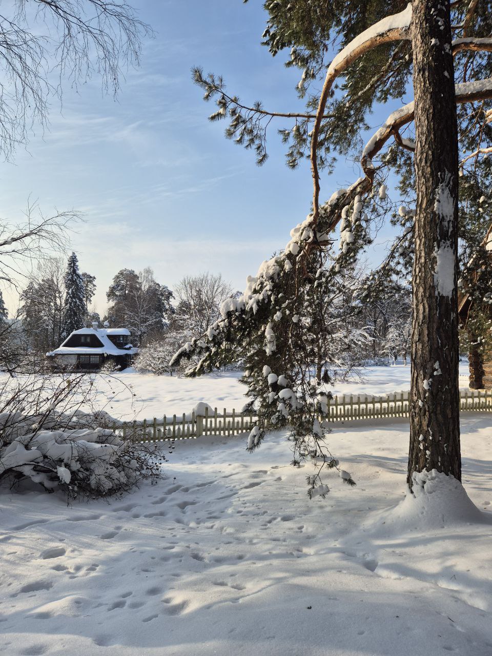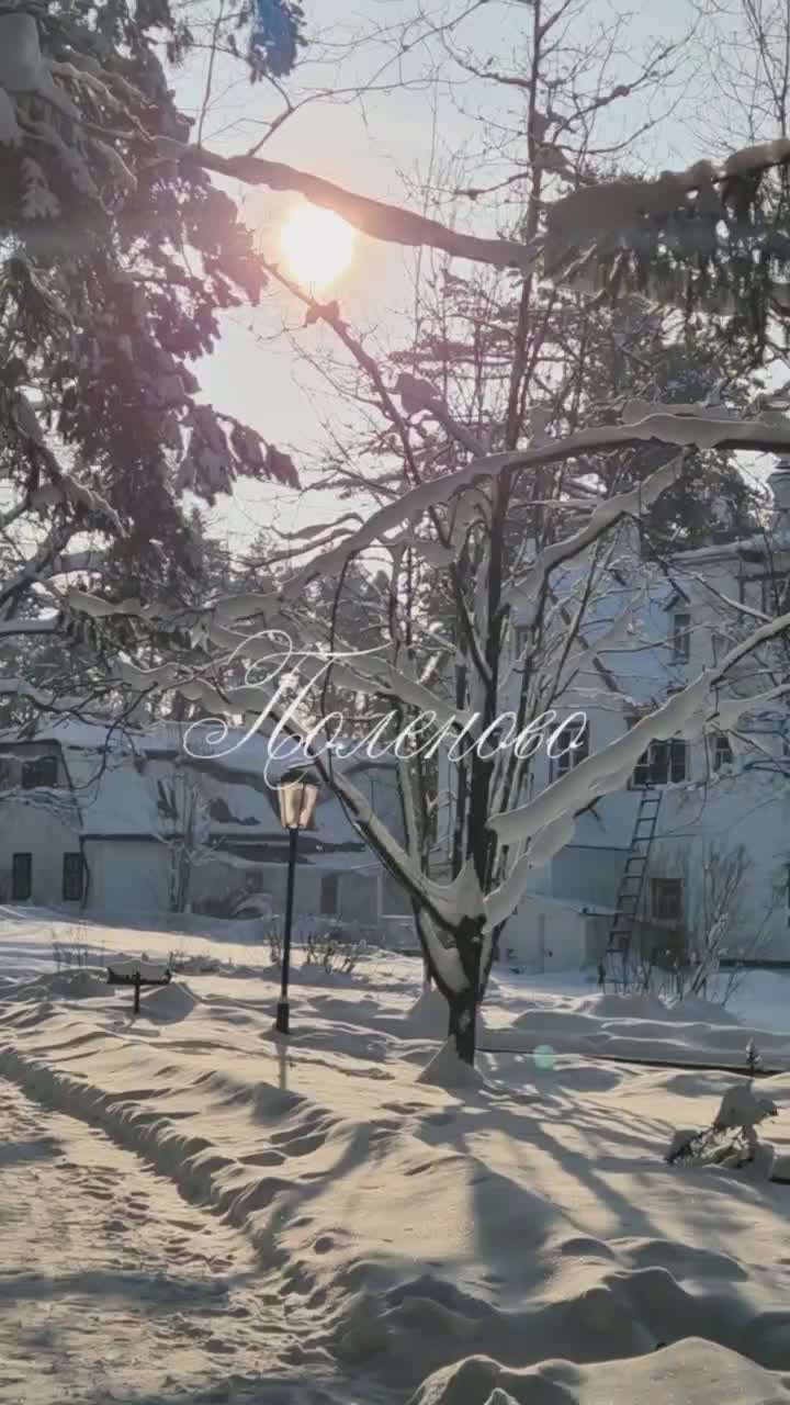 В кадре — заснеженное Поленово . Скрипучий снег, яркое солнце и безмолвие создают настоящую зимнюю сказку.