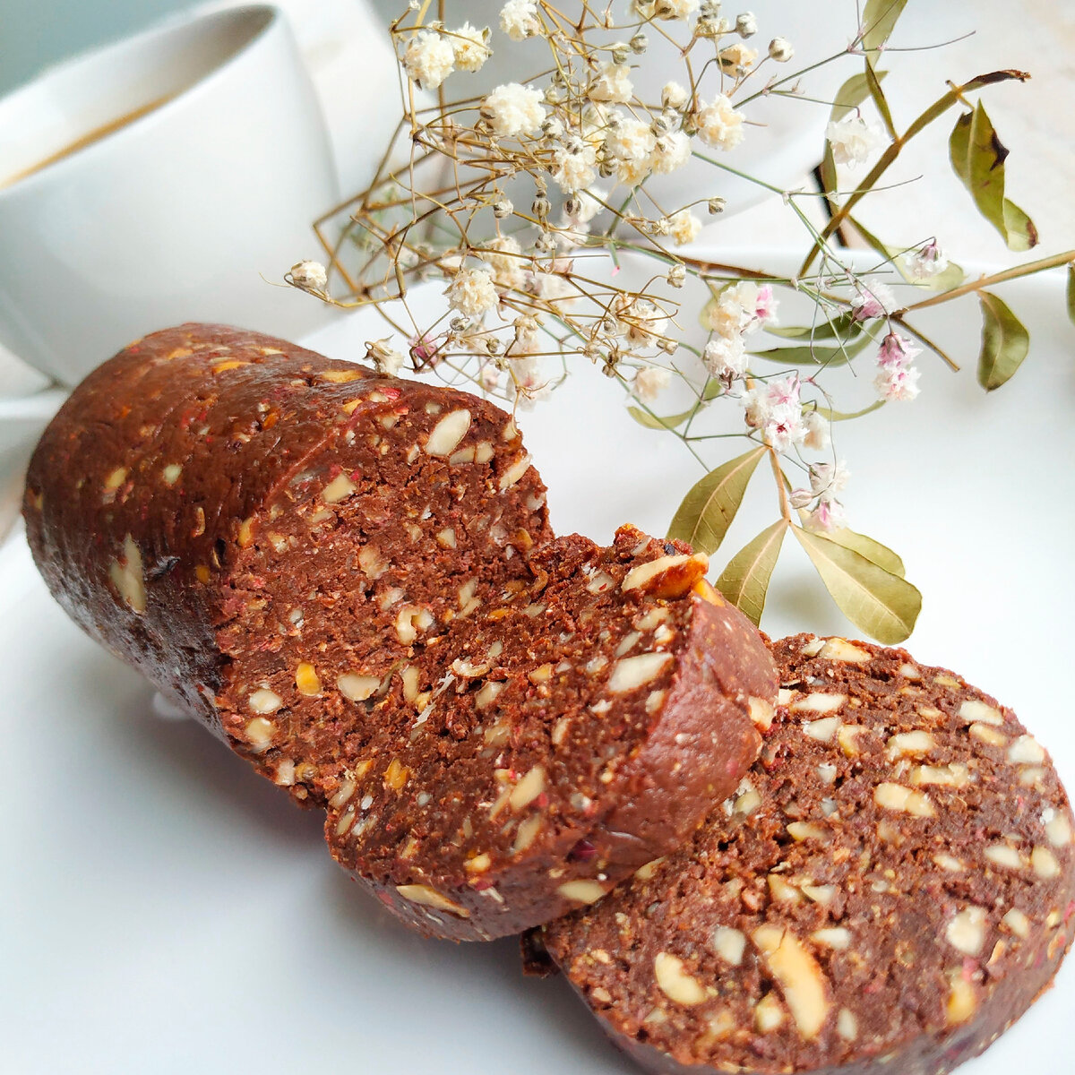 Эта шоколадная колбаса – отличный вариант для тех, кто следит за своим питанием, но не хочет отказываться от сладостей. Она подходит для людей, избегающих муку, сахар, а также лактозу и глютен, что делает её идеальным выбором для всех, кто ищет полезные и вкусные десерты.