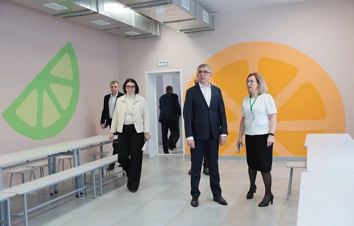 Сегодня ЦО посетил Дмитрий Миляев. В конце 2025 года в школе завершился капитальный ремонт, во время которого было полностью отремонтировано здание, закуплены новое оборудование и мебель в предметные кабинеты, обновлены актовый зал, кухня и столовая.