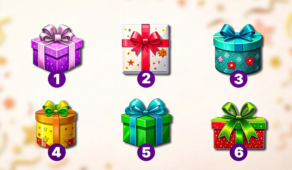 Вглядитесь в подарочные коробки на изображении и позвольте каждому пустому месту подсказать, какая из внутренних сфер звучит сильнее именно для вас. Выбор той коробки, что притянула внимание сильнее всего, становится ключом к пониманию одного важного ресурса.