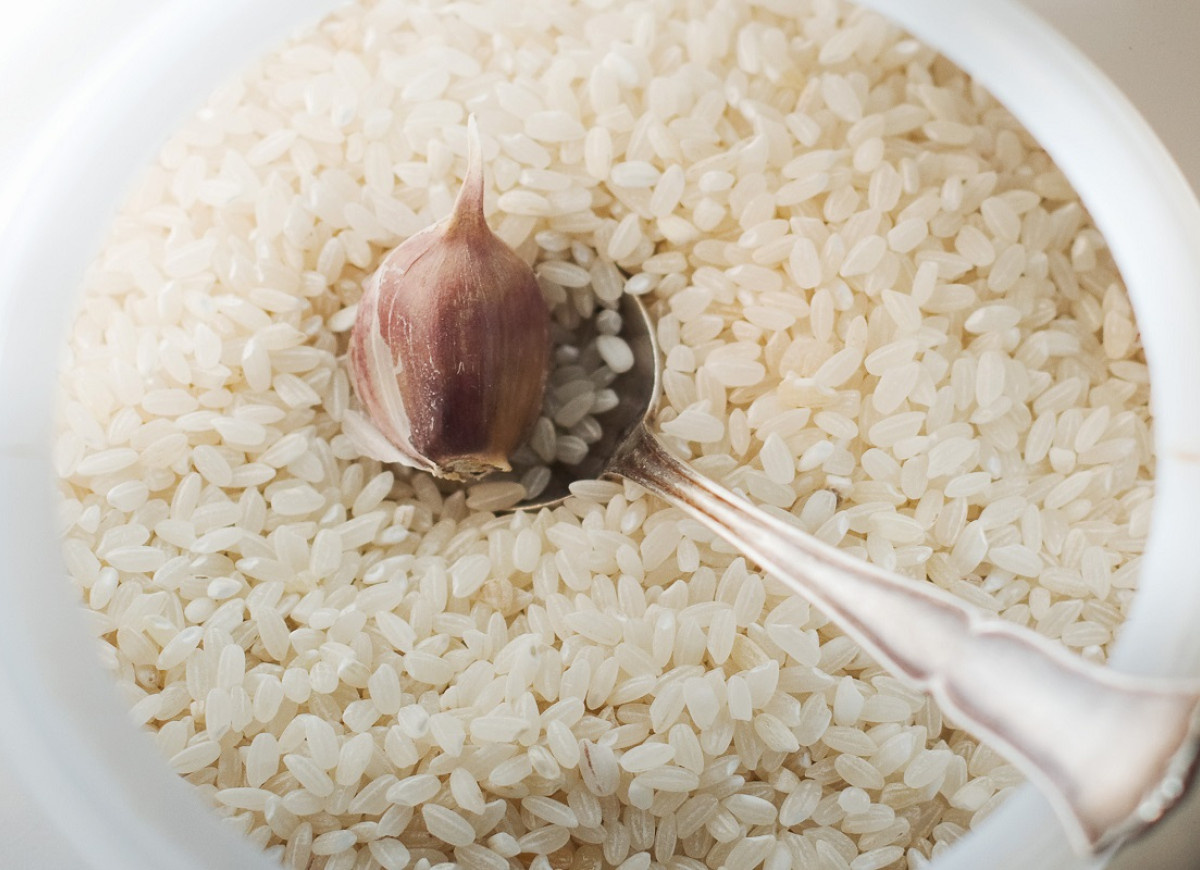 Рис отлично поглощает влагу, что позволит чесноку оставаться свежим и ароматным на протяжении долгого времени, предотвращая гниение.