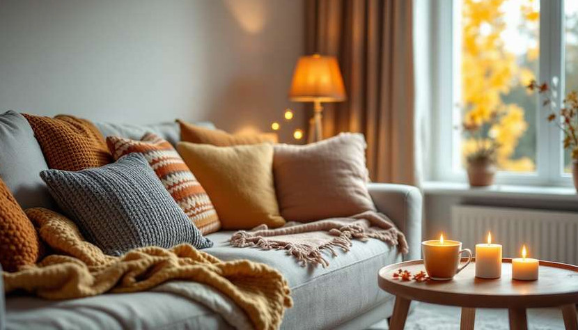 Соберите пледы, подушки и шторы, чтобы добавить теплоты вашему интерьеру. Используйте шерстяные или вязаные фактуры, чтобы создать атмосферу уюта. Яркие акценты в таких оттенках, как горчичный или изумрудный, помогут разбавить осеннюю серую палитру.