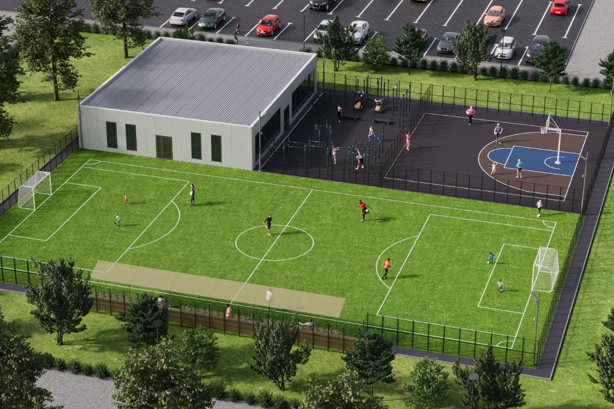 На открытых площадках расположатся мини-футбольное поле (40х20 м), стритбольная площадка (15х11 м) и зона для воркаута.