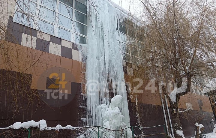 Сосульки на здании спортивной школы «Юность» в Туле угрожают газовой трубе и линии электропередач