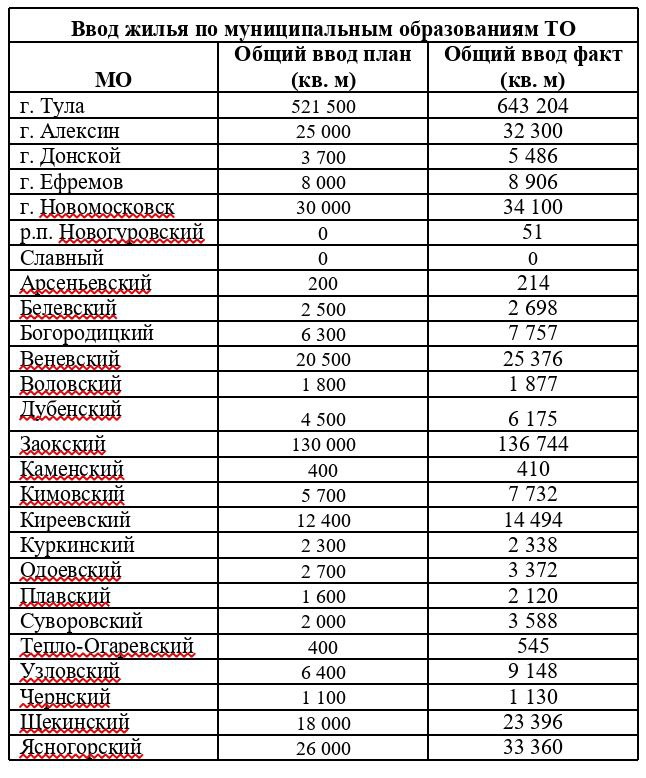 На Тулу — 64%, на Заокский район, граничащий с Московской областью, — 13,5%. Всего в прошлом году в регионе сдали 1,006 млн кв. метров жилой площади.