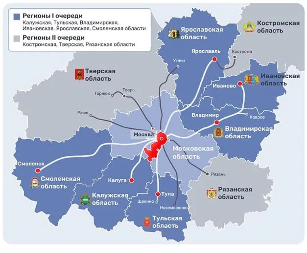 В рамках первой очереди программы до 2030 года планируется запуск дополнительных комфортных поездов в Калугу, Тулу, Владимир, Иваново, Смоленск и Ярославль, говорится на сайте правительства Москвы.