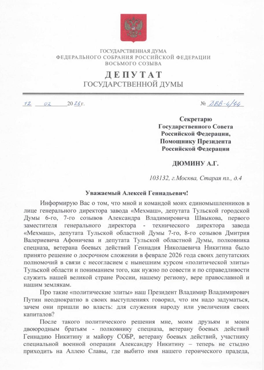 Депутат Госдумы от Тульской области Виктор Дзюба и его команда действительно решили досрочно сложить свои полномочия