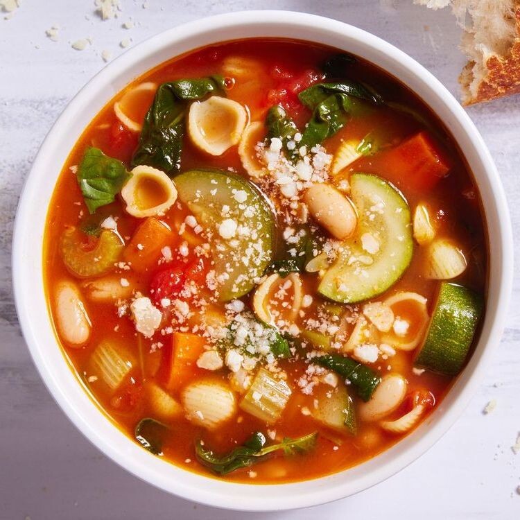 Классический томатный бульон встречает цуккини, фасоль и небольшой набор пасты. Вкус получается насыщенным, а подача — уютной, как обед в обычной кухне.