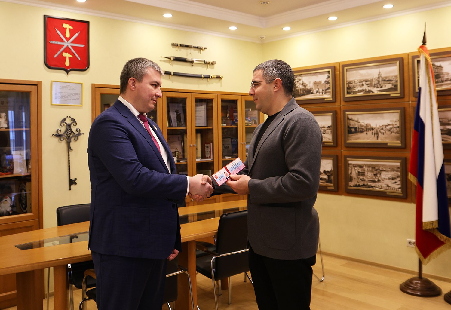 Глава города Тулы Алексей Эрк вручил удостоверение помощника депутата Тульской городской Думы участнику специальной военной операции Павлу Белевскому