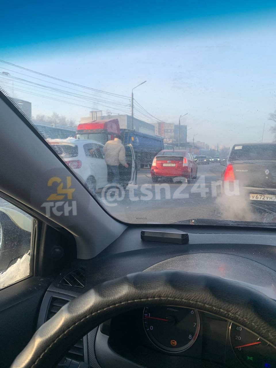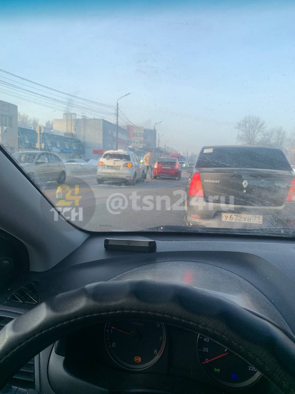 Из-за аварии собралась большая пробка, которая начинается в районе Тульского суворовского училища.