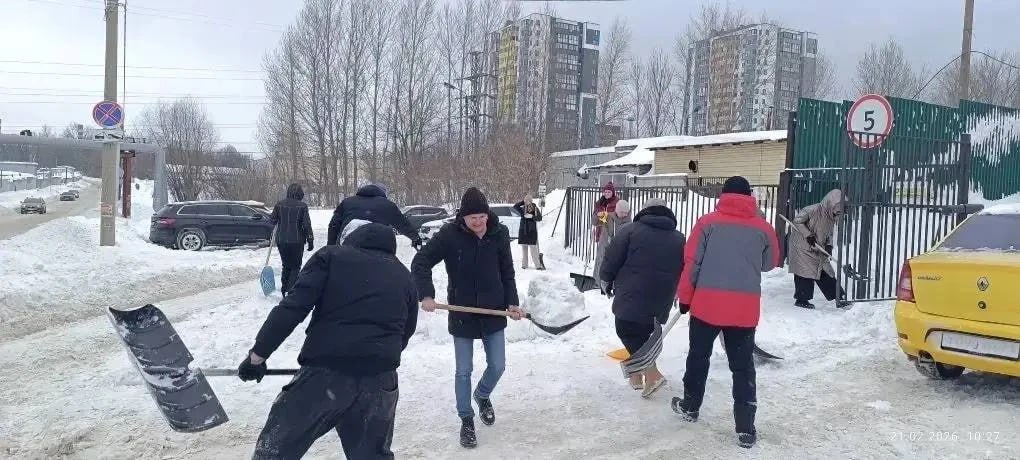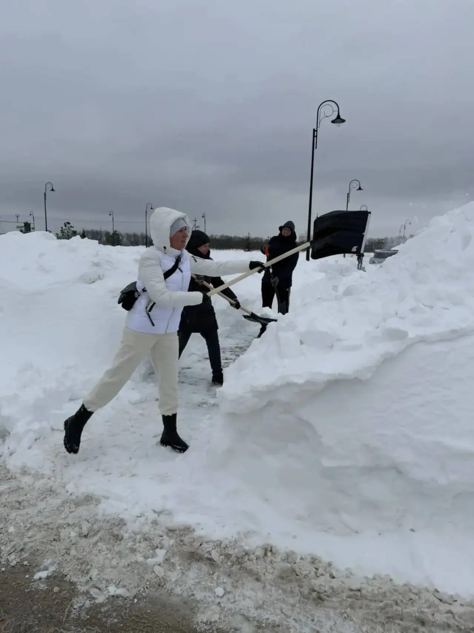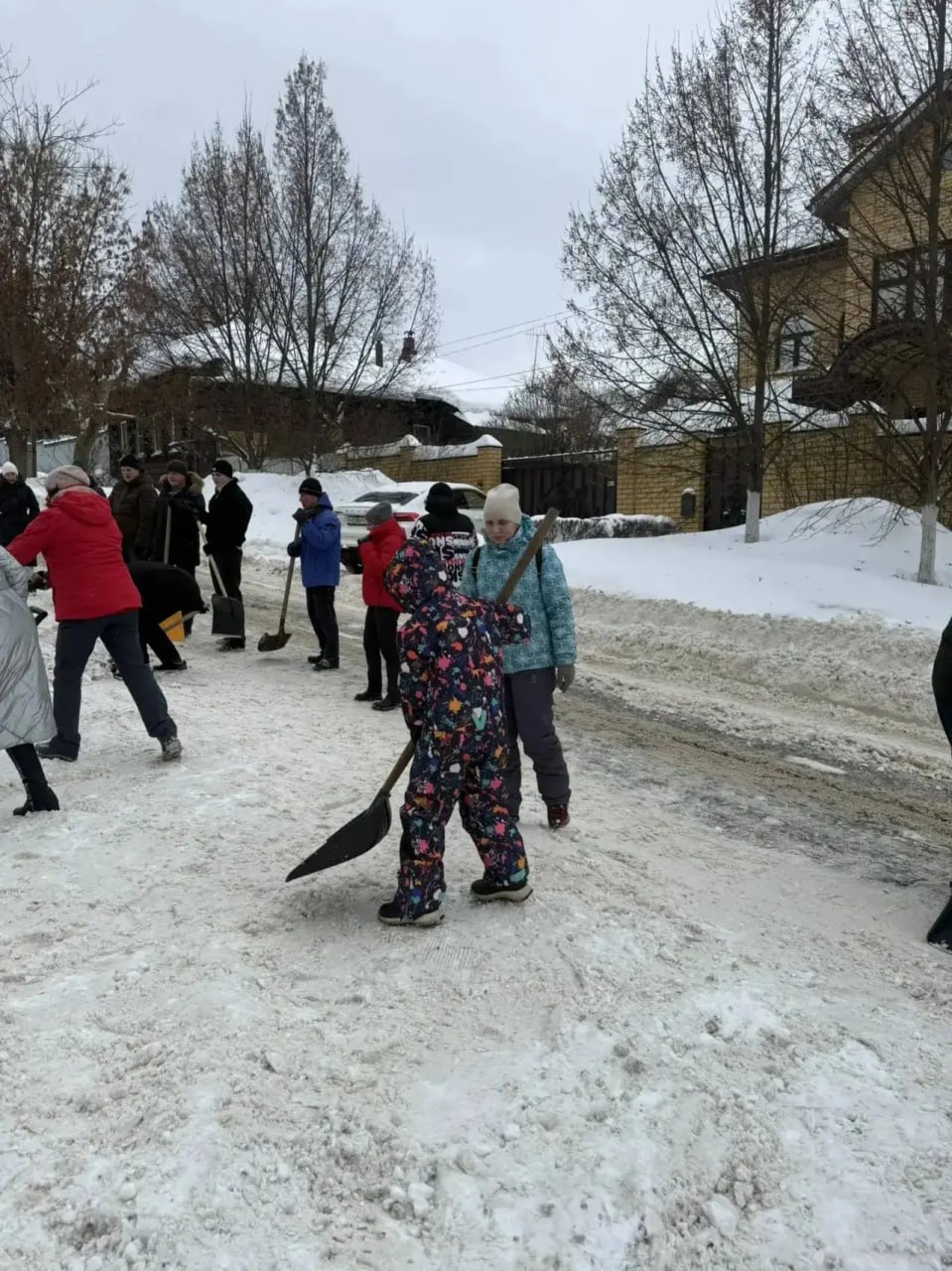 На борьбу со снегом выходят жители разных возрастов. Даже малыши вносят свой маленький, но важный вклад.