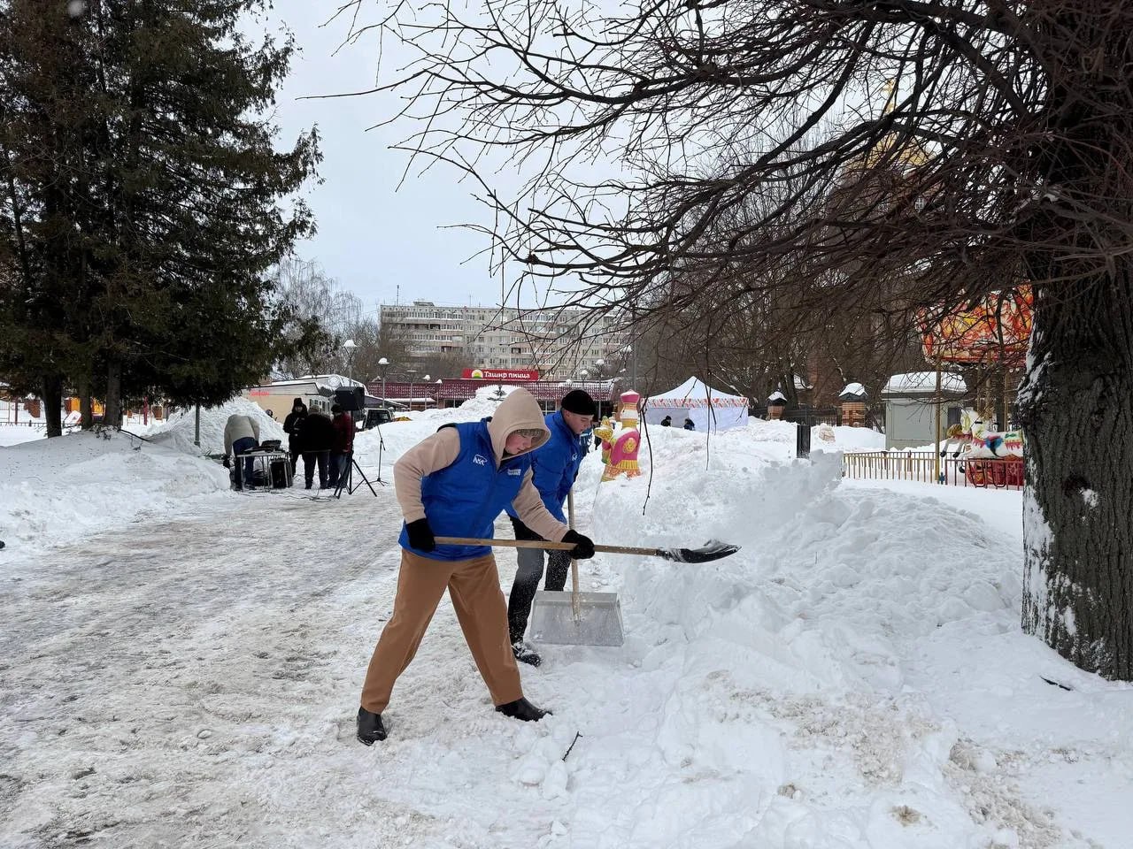 Туляки массово присоединились к "Снежным субботникам".Сегодня они не простые - а с блинами, горячим чаем и весёлыми песнями. Ведь в самом разгаре Масленичная неделя.