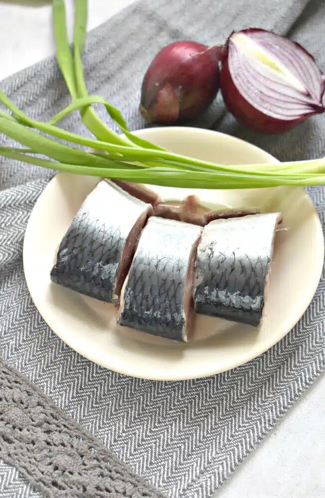 Для начала потребуется свежая селедка. Если рыба заморожена, её следует переместить из морозильной камеры на нижнюю полку холодильника за несколько часов до начала процесса.