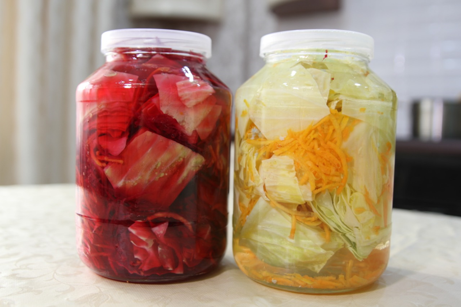 - Уложить пластины капусты в чистую емкость и залить остывшим маринадом.