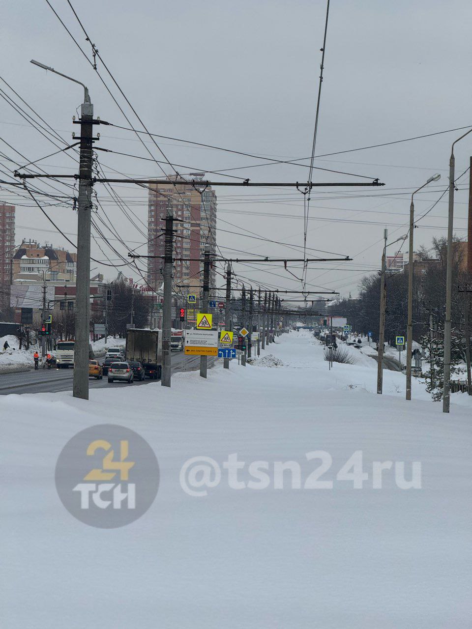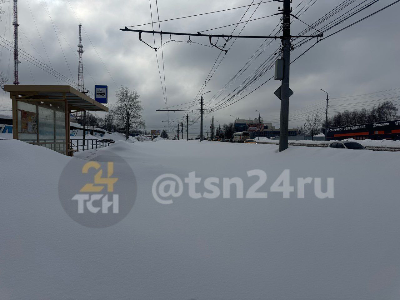 Читатели ТСН24 прислали фото трамвайной остановки «Ново-Басово» — на снегу видно, что люди всё ещё надеются дождаться трамвая, хотя движение приостановлено.