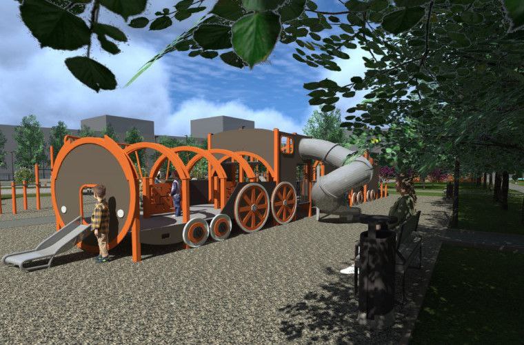 Игровая зона — резиновое покрытие и комплекс «Паровоз»