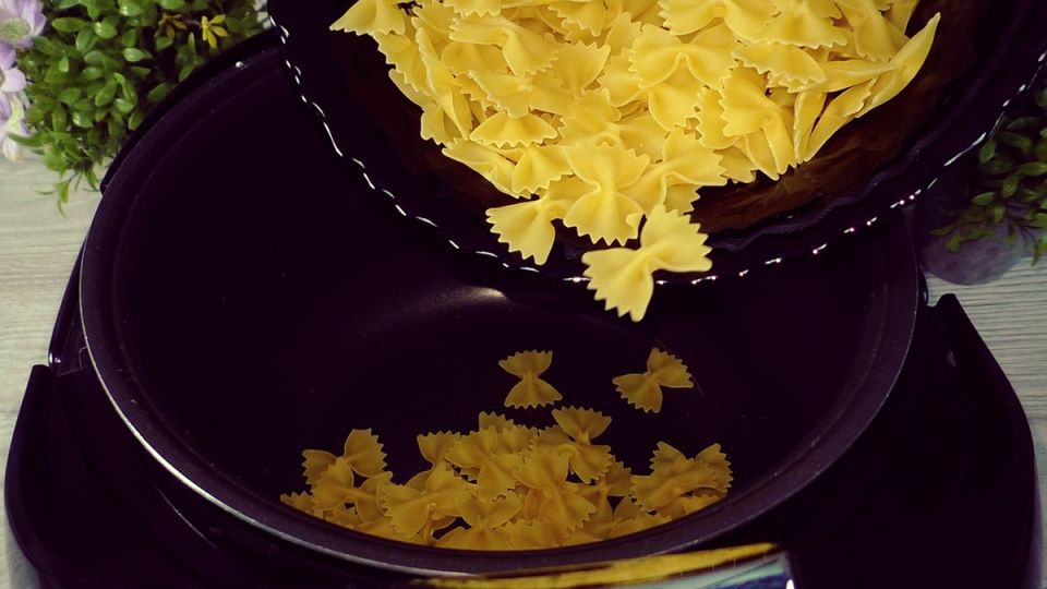 1. В чашу мультиварки добавить макароны, предварительно выбрав любые формы, но лучше всего использовать твердые сорта для наилучшего результата.