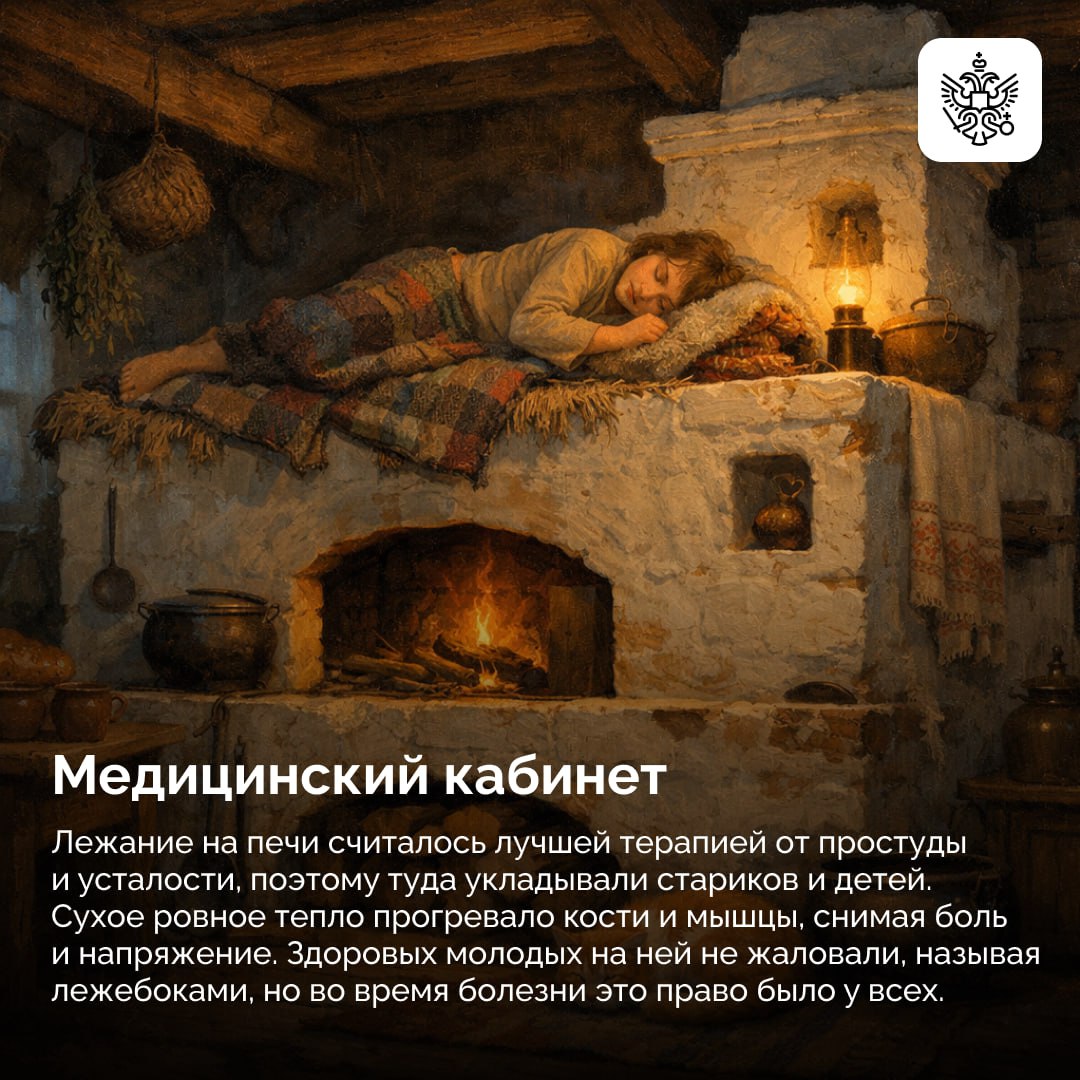 Смотрите карточки, чтобы узнать, как работала эта гениальная система и почему лежание на печи — не лень, а важная терапевтическая процедура