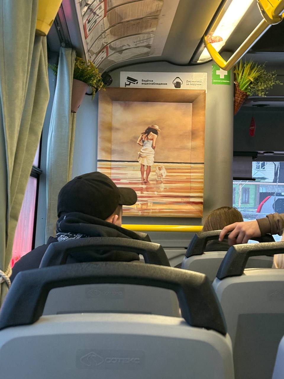«На окнах — симпатичные шторки, салон украшают горшочки с цветами и картины, есть забавные крючки для одежды. Вот бы каждый водитель так относился к людям и к своему автобусу», — поделилась подписчица.