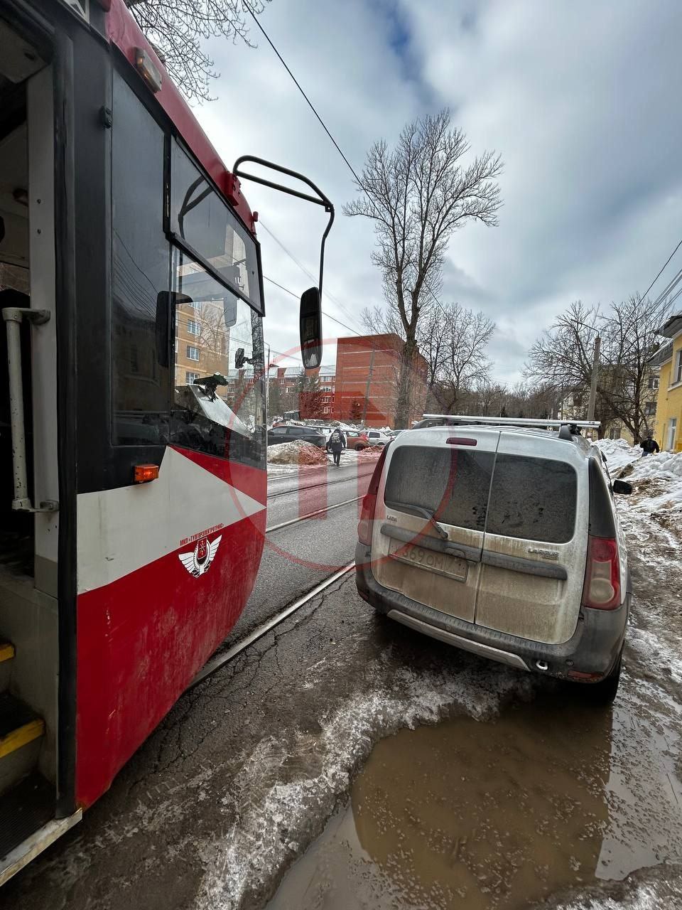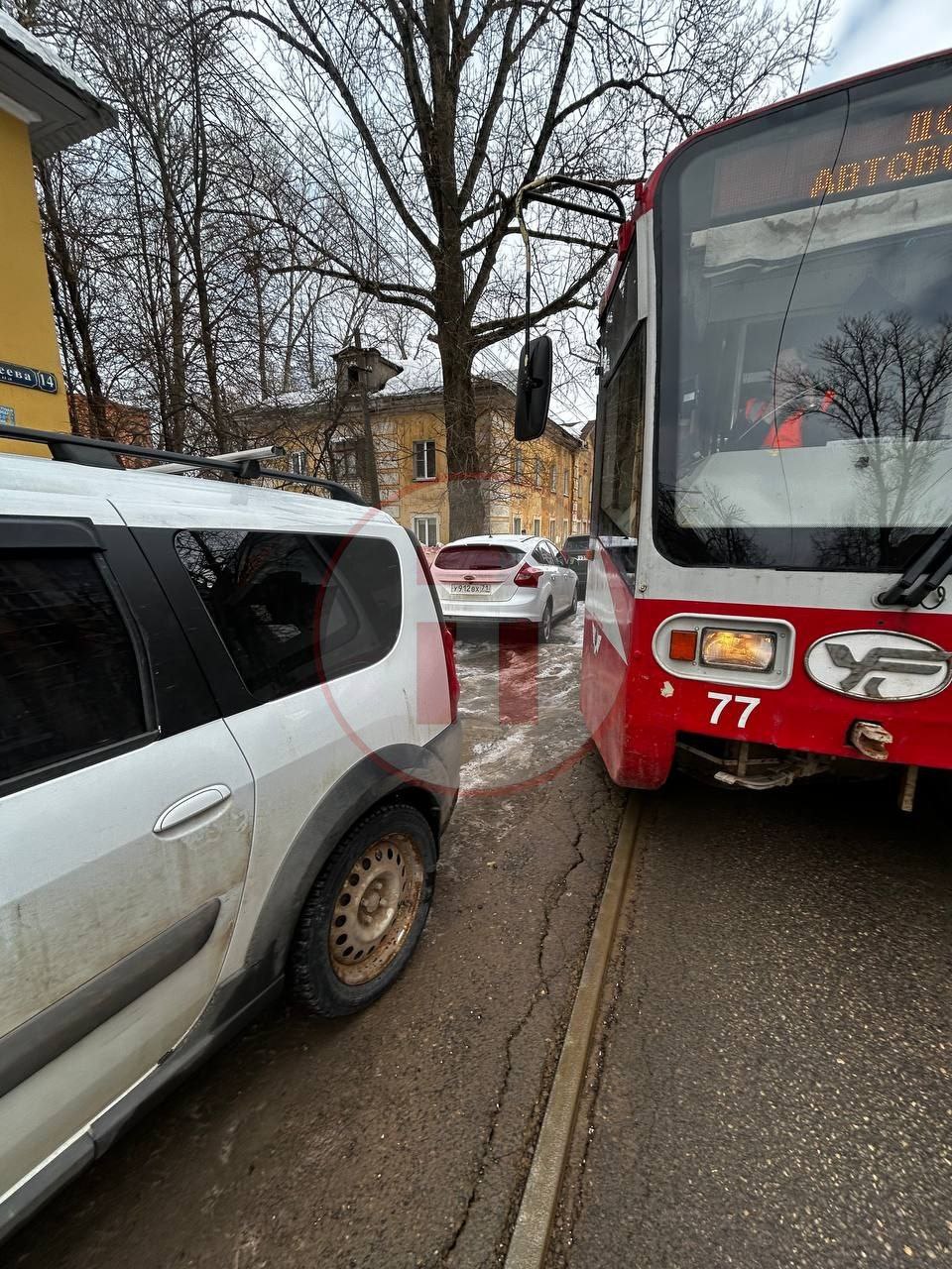 Опять из-за припаркованного авто не может проехать трамвай. Водитель рельсового транспорта ситуацию прокомментировала коротко: «Я встала на своем любимом месте».
