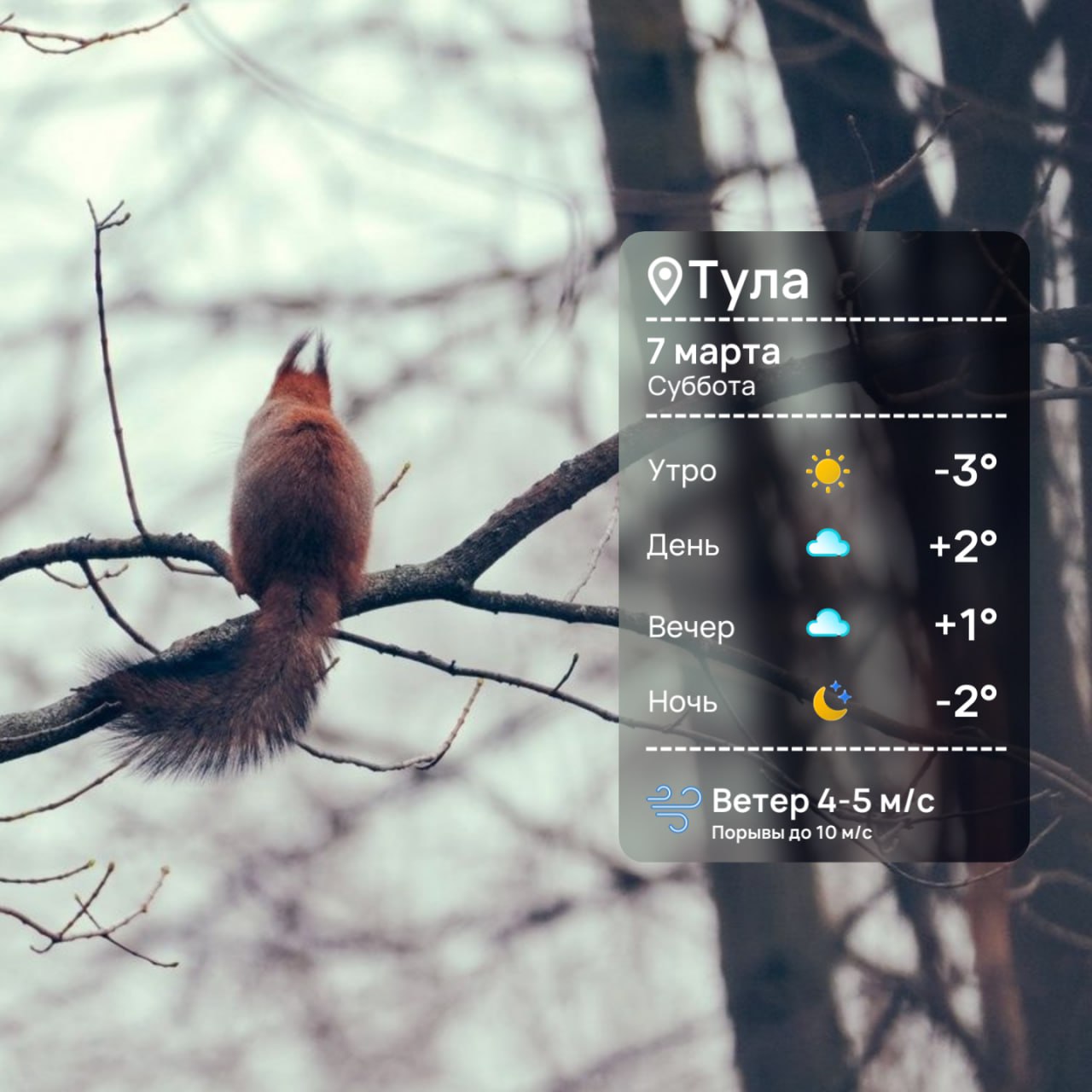 Погода на 7 марта Время рассвета: 07:04.Время заката: 18:16.Световой день: 11 ч. 12 мин.Температура воздуха: +2°C (днем), -2°C (ночью).Облачно, без осадков.Геомагнитная обстановка: спокойная.ТСН24 | Прислать Новость | Мы в МАХ