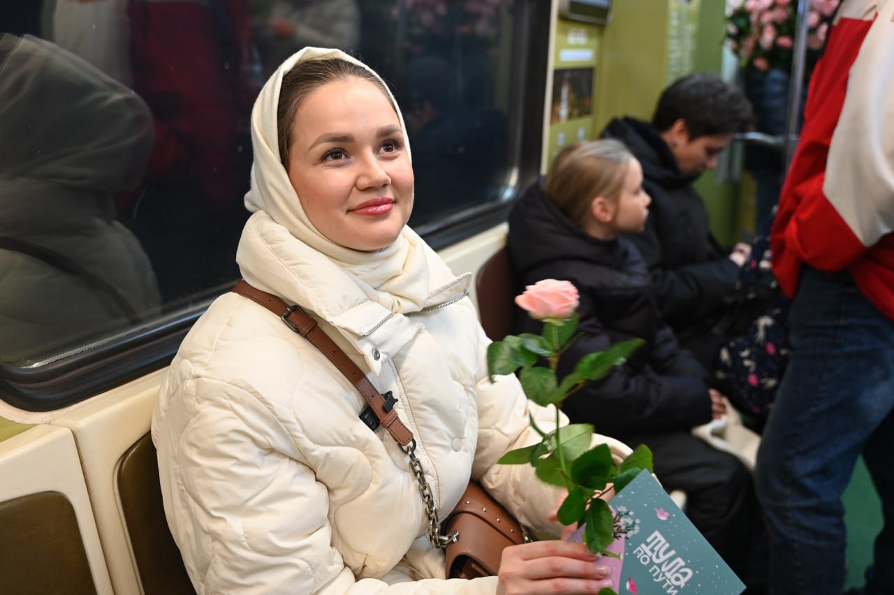 Дарите женщинам цветы: пассажирок московского метро порадовали тульскими розами
