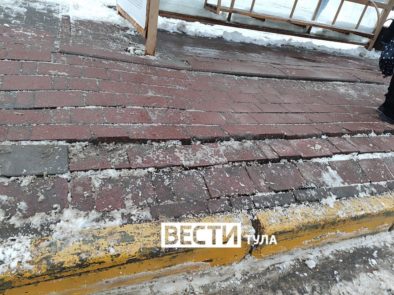 Плитка на остановке на улице Фрунзе, где цветочный магазин, так вспучилась, что сложно заходить в транспорт.