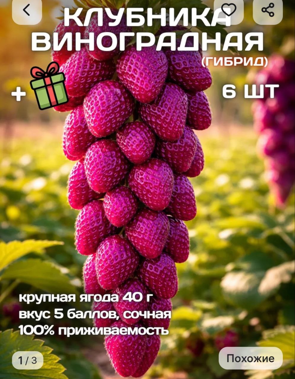 Фото товаров с фиолетовой клубникой и ягодными деревьями напоминают скорее райский сад, на деле сгенерированы нейросетью.