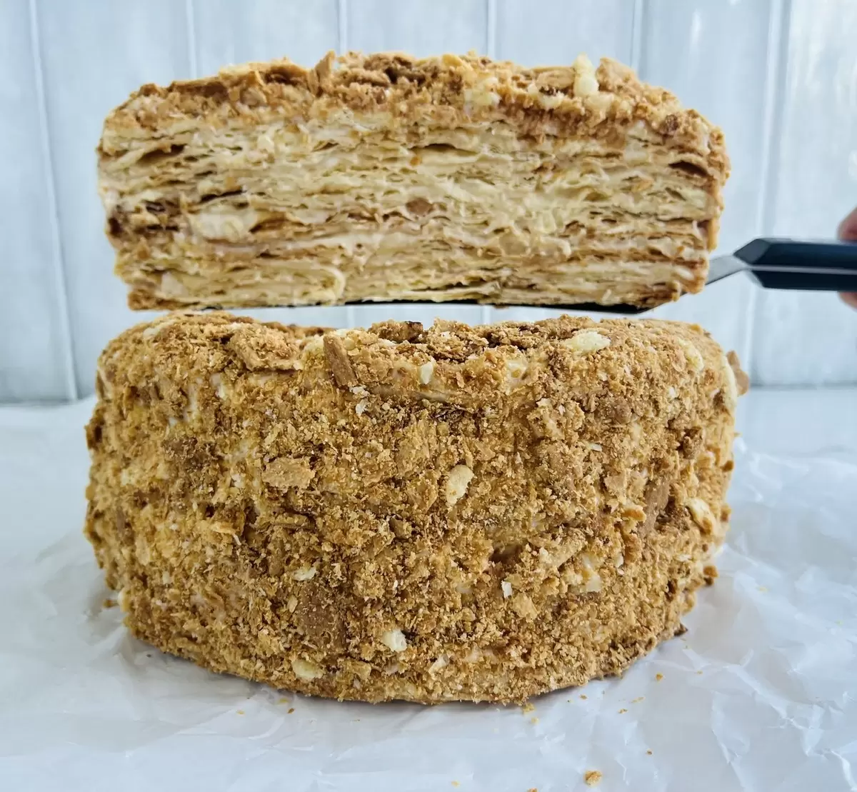 Это не просто десерт. Благодаря карамелизированным коржам и идеальному заварному крему на основе сливок, "Наполеон" приобретает насыщенный вкус, который украсит любой стол. Мягкость и воздушность слоеных коржей обещают гармоничное сочетание с нежным кремом, что делает этот торт настоящим шедевром.