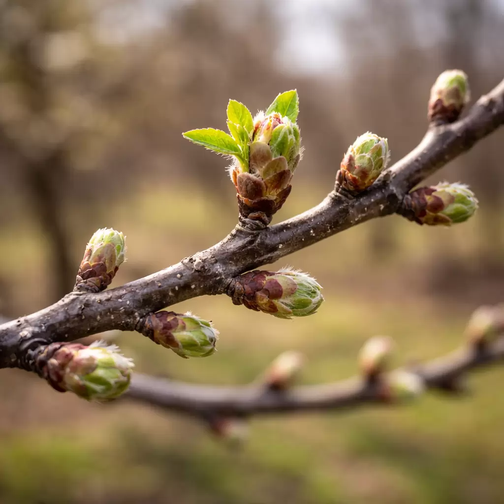 - Состоянию побегов: Почки образуются на разных типах побегов — молодых или старых. Молодые побеги, получающие больше света, пробуждаются активнее, тогда как старые или ослабленные ветви просыпаются медленнее из-за недостатка питательных веществ.