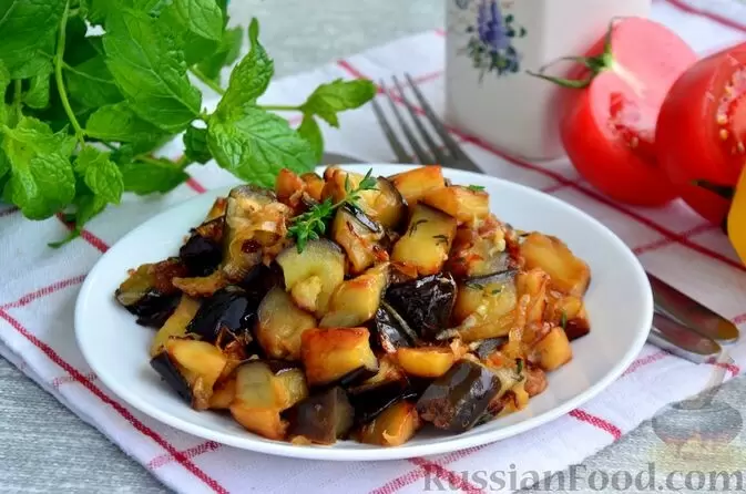 Нельзя обойти стороной и такой простейший, но бесподобный рецепт как жареные баклажаны с луком. Эти два ингредиента создают удивительную гармонию вкуса, а щепотка специй подчеркивает их натуральные нюансы.