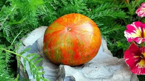 На первом взгляде сорт удивляет не только крупной ботвой, но и полосатой окраской плодов, что делает их узнаваемыми в летних салатах. Такой томат становится не столько техническим элементом сада, сколько маленьким художественным акцентом на кухне — сладкие плоды прекрасно держат форму и подходят как для свежего потребления, так и для переработки.