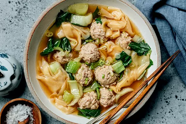 Этот суп с вонтонами — отличная возможность насладиться ароматом имбиря, сочными тефтелями и всем другим в одном блюде, без стресса на кухне.