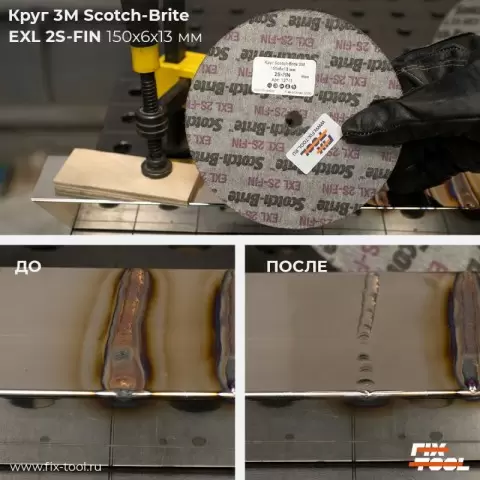 - Доводочные круги: Круги Scotch-Brite, такие как модель 3M EXL 2S-FIN, идеально подходят для быстрой очистки швов от побежалости, оставляя гладкую поверхность.