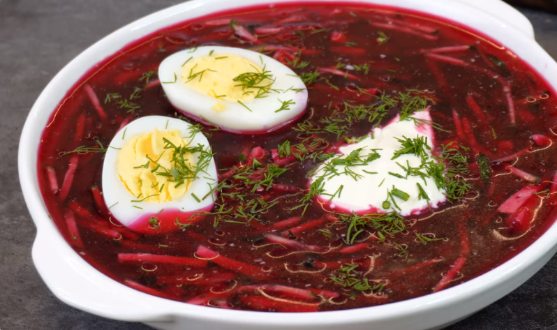Разлить готовый холодник по тарелкам, добавить половинки отварного яйца и немного сметаны. Такой суп станет особенно вкусным на следующий день, и его можно удобно хранить в холодильнике – он идеально освежает в жару. Также данную свекольную заготовку можно использовать и в горячем свекольнике, что добавит разнообразия в летнее меню.