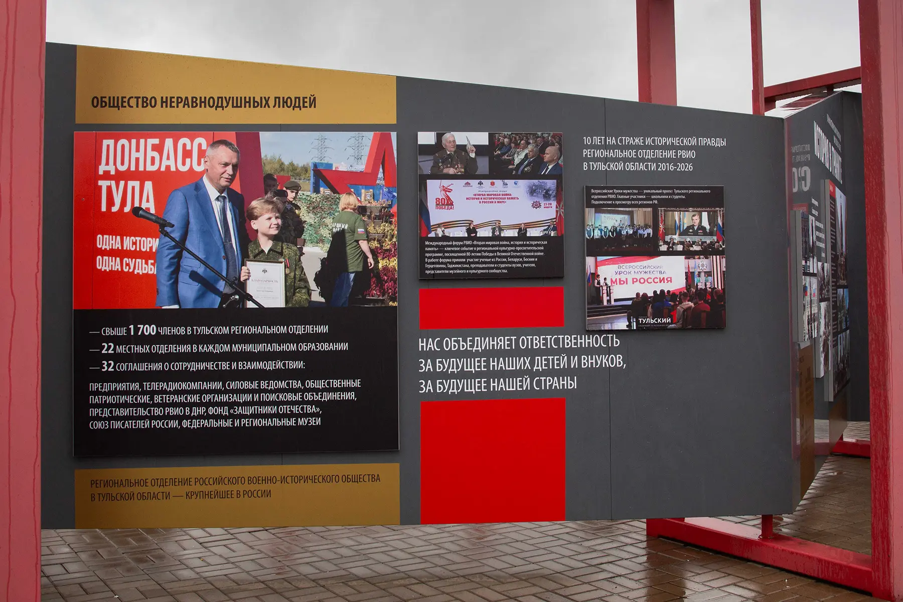 Баннерные композиции «И каждый город был героем» и «Моя земля. Моя история» приурочены к 85-летию героической обороны Тулы, 50-летию присвоения городу почетного звания «Город-герой» и 10-летию Тульского регионального отделения Российского военно-исторического общества (РВИО). Их открыли 23 апреля.
