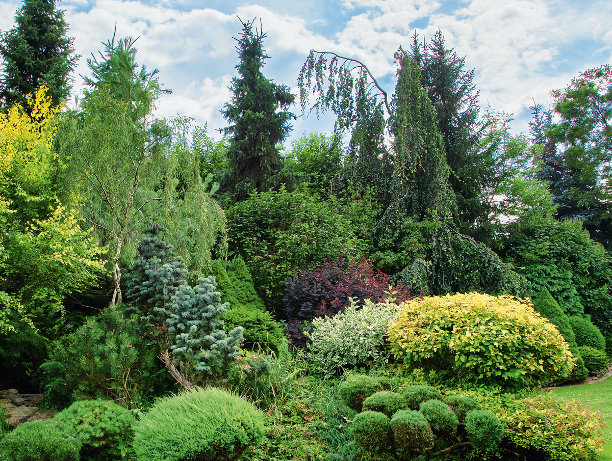 Сложность возникает, когда речь заходит о юных растениях. С одной стороны, это дает возможность телесно подходить к созданию собственного сада, а с другой — порождает вопросы о том, как обеспечить декоративный вид на промежуточные этапы их роста. Нужно учесть, что, к примеру, маленький можжевельник может со временем вырасти до трех метров в диаметре.