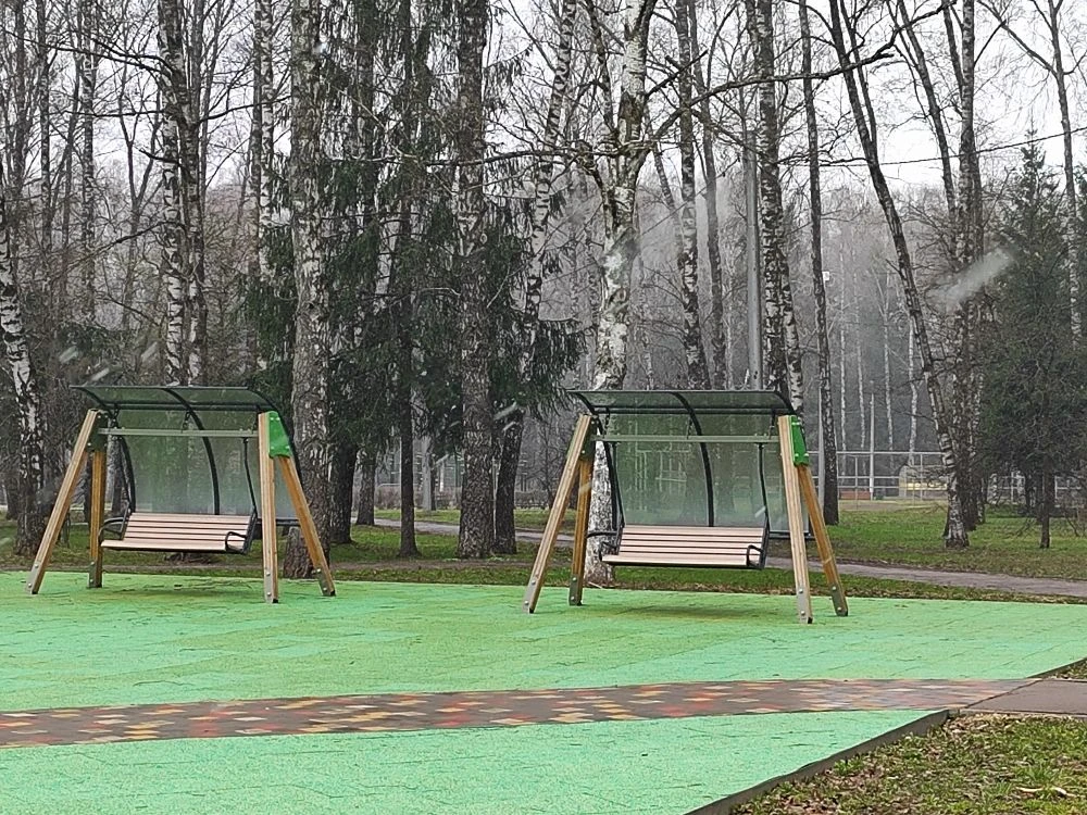 Удобные скамейки-качели в парке. Теперь в детском городке интересно даже родителям