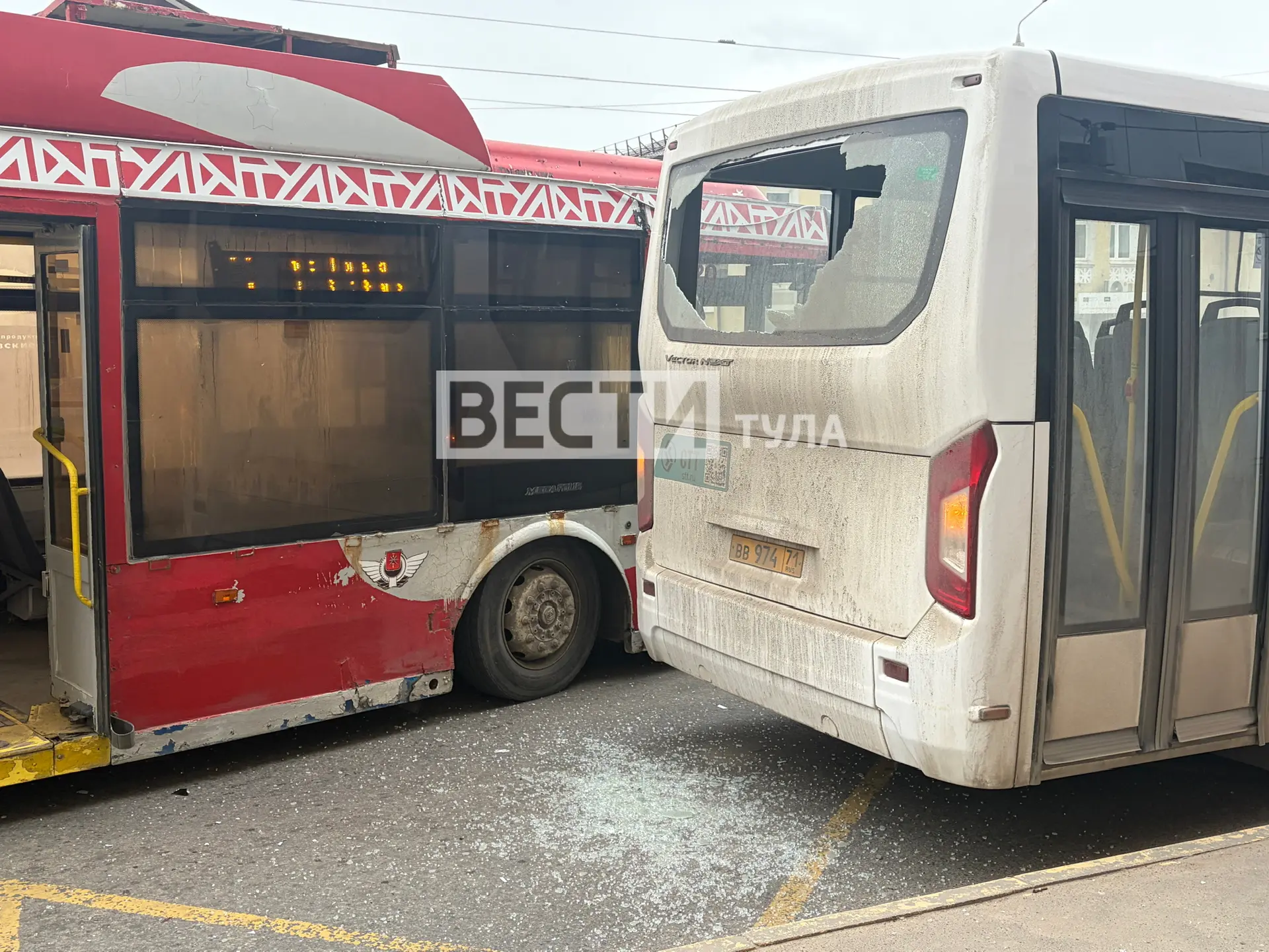 4 троллейбус столкнулся с автобусом на остановке ул. Максима Горького
