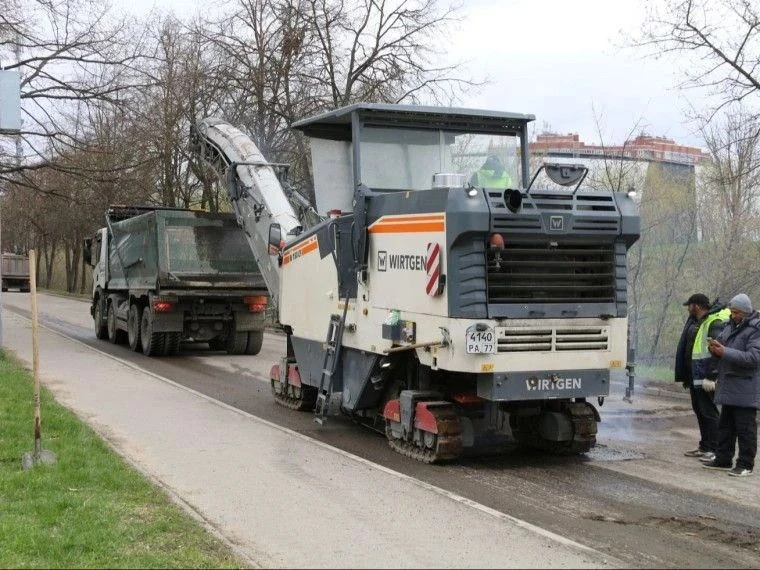 Начали работы с ул. Новомосковской. Сейчас здесь ведется фрезерование старого асфальтового покрытия. После чего подрядчик приступит к укладке двух слоев асфальта.
