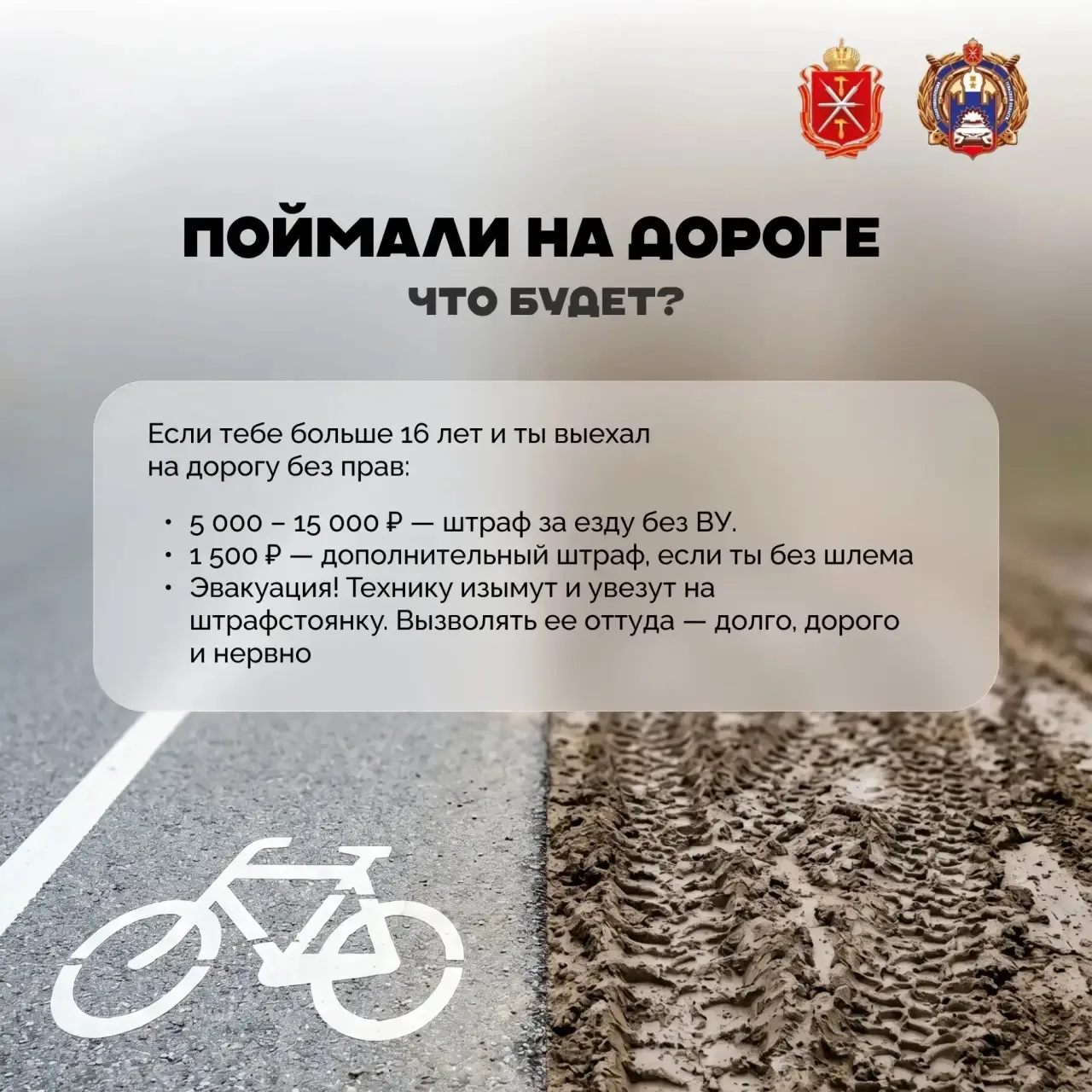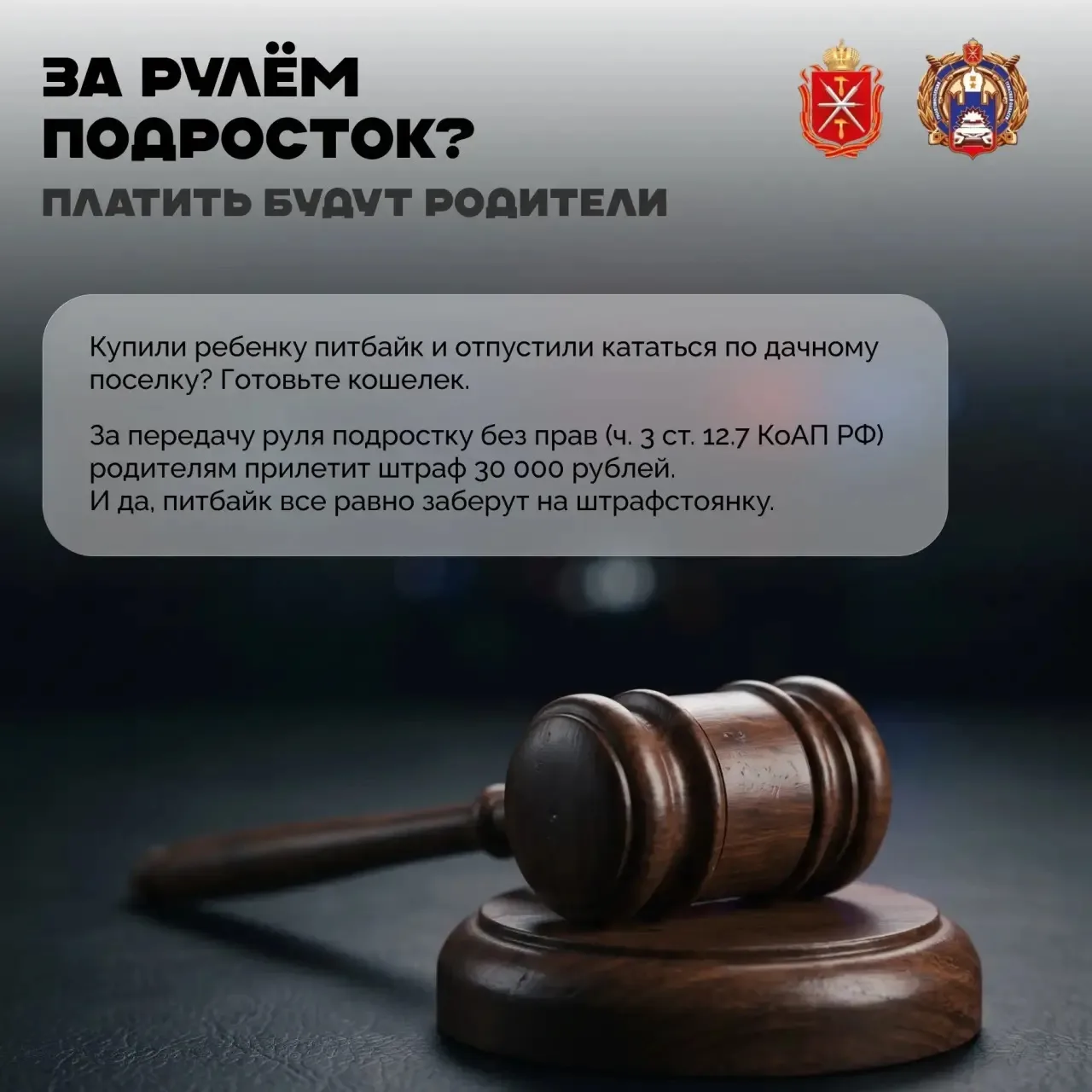 Уважаемые родители! Впереди много выходных, и у детей появится соблазн покататься на питбайках по дачным поселкам или дорогам.