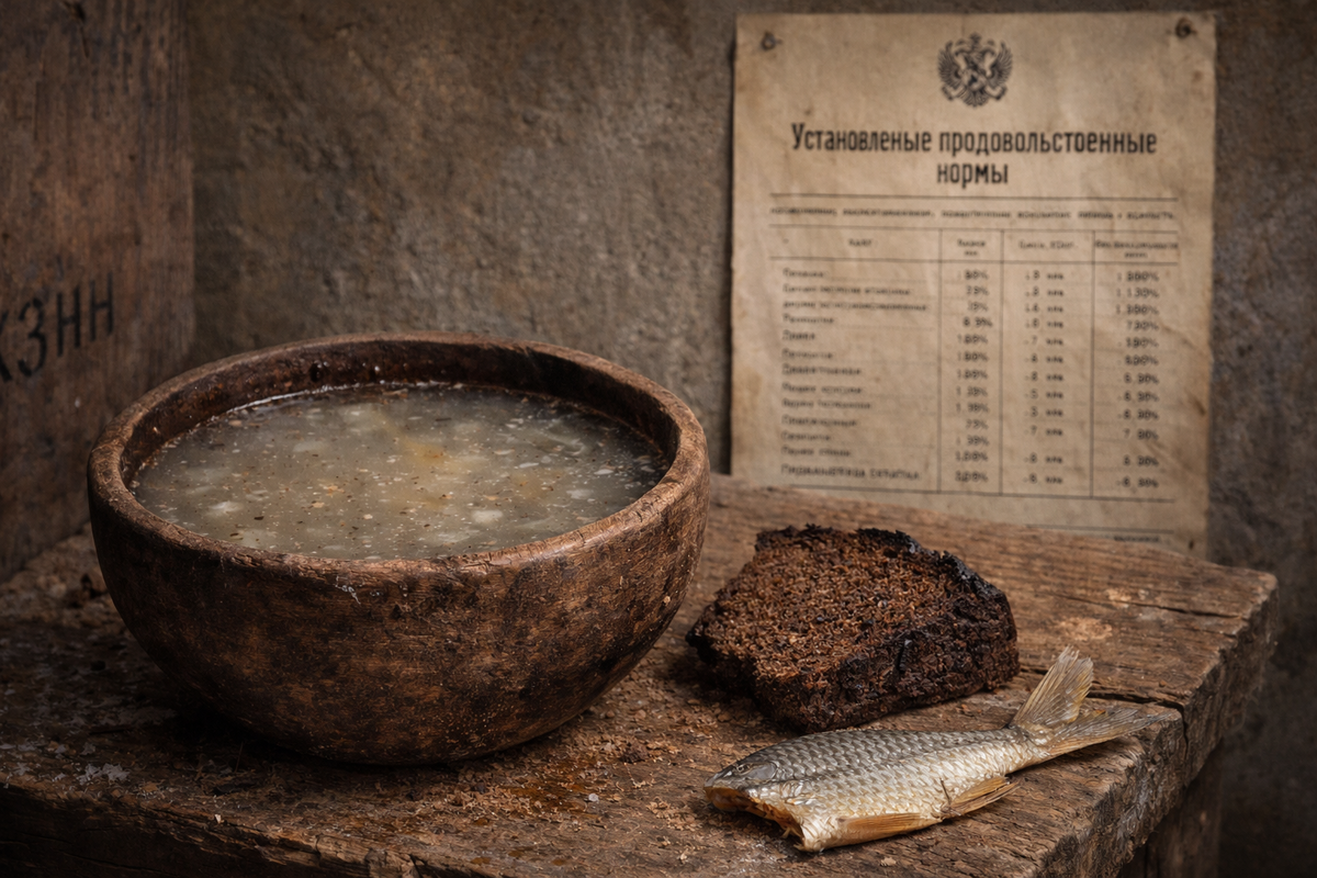 Казённое продовольственное обеспечение у каторжан выглядело вполне устраивающе на бумаге. Нормы были зафиксированы: определенное количество ржаного хлеба, крупы и, по праздникам, «мясная порция». Однако на практике существовали значительные отличия между прописанными нормами и реальным содержимым мисок арестантов: